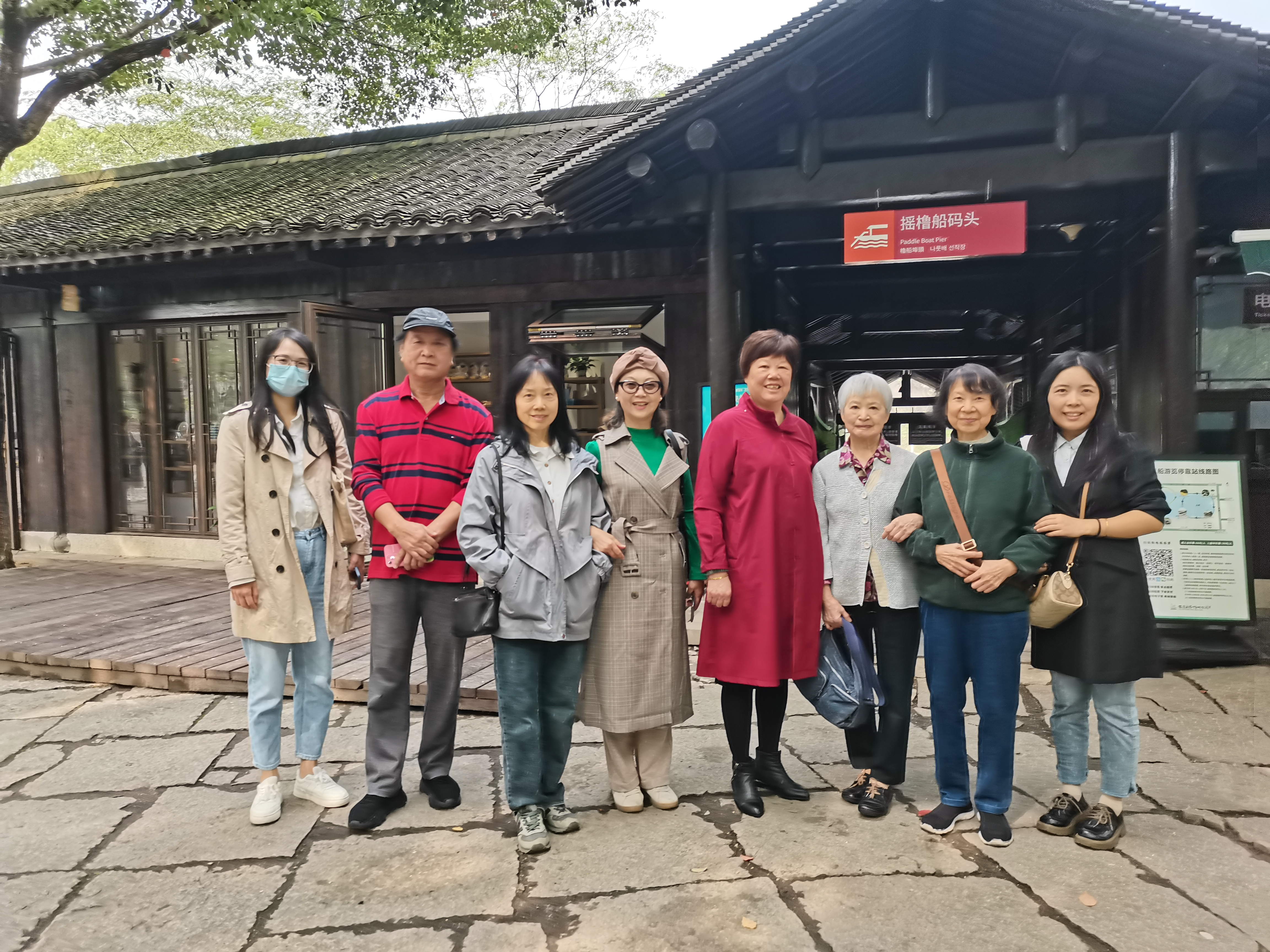 老教师们乘坐摇橹船,悠悠荡荡地穿梭于西溪湿地的河道间,领略湿地的独特韵味,红彤彤的柿子挂满枝头,火柿丰收的美景映入眼帘,宛如一幅秋日丰收画卷,让大家感受到了大自然的慷慨馈赠。