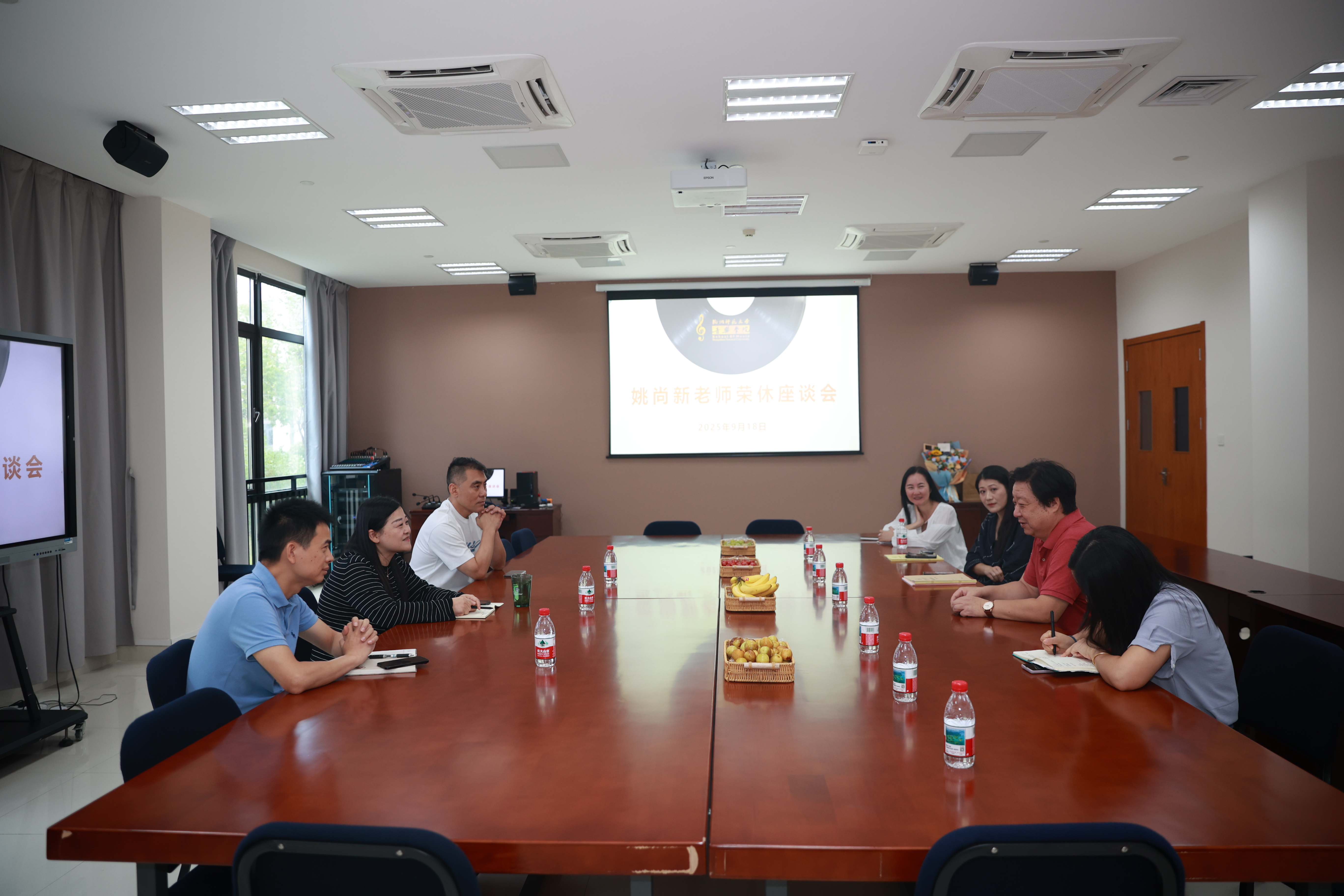 9月18日上午,52av 以“致敬岁月·赓续师道”为主题的荣休座谈会在诚园三号楼会议室举行。学院党总支书记冯涯、副院长马学文、声乐系主任王涛、综合办主任朱晓兰、工会主席陈懋樊及声乐系教师代表齐聚一堂,共同欢送从教四十载的姚尚新老师光荣退休。