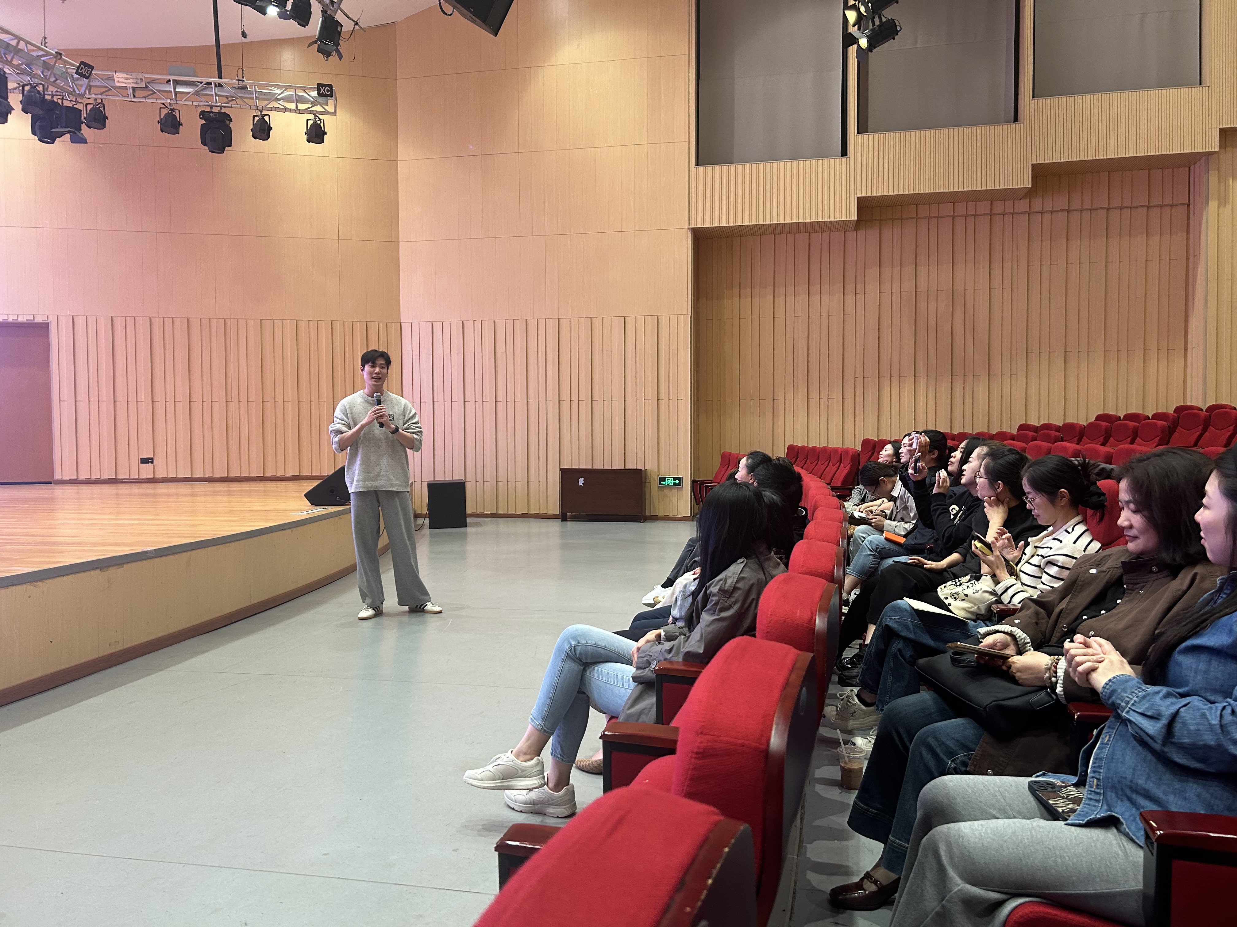 10月22日下午,52av 西林音乐厅内乐音袦绕、舞影翩跹,一场别开生面的党日活动在此精彩上演。此次活动由学院学术副院长、教工支部副书记杨欣欣老师主持,打破传统会议室学习的常规模式,创新性地走进音乐厅,以欣赏红色题材舞剧《秀水泱泱》为载体,将音乐舞蹈艺术与思政教育深度融合,精心打造“音乐厅里的思政课”这一特色党建品牌,让思政学习在艺术氛围中焕发出全新的活力。